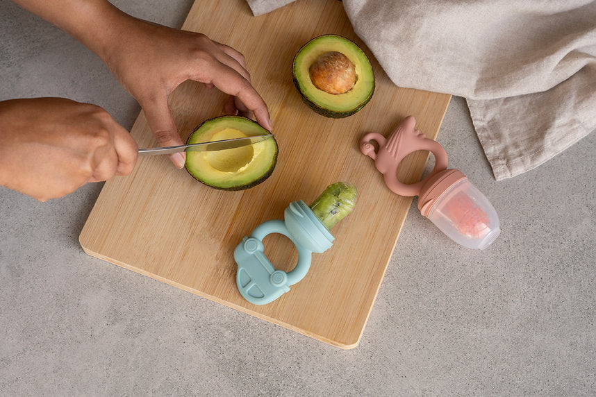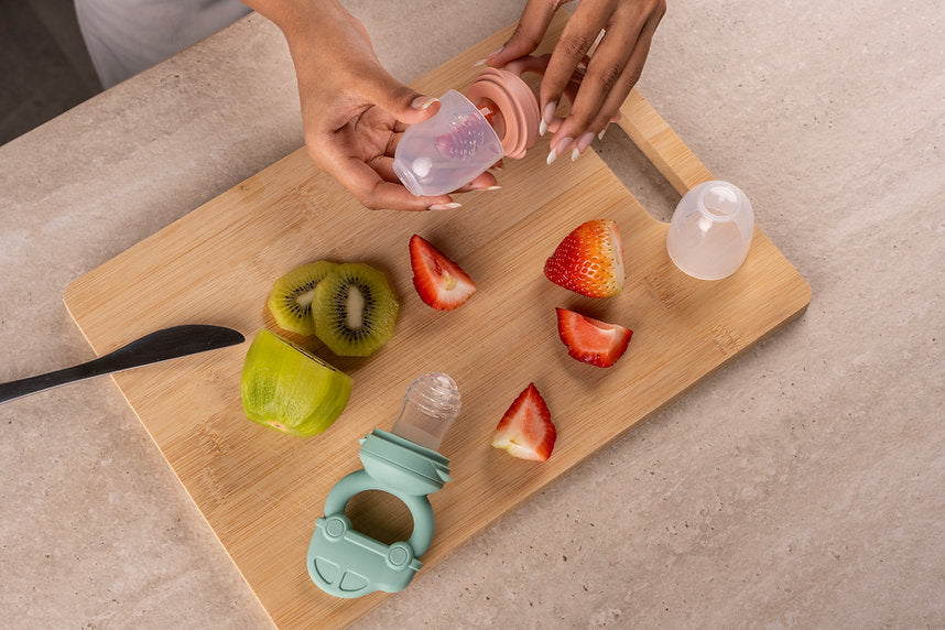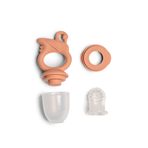 Ο τροφοδότης φρούτων μας επιτρέπει να περνούν μόνο μικρά κομμάτια εύπεπτου φαγητού, έτσι μειώνει τον κίνδυνο πνιγμού και είναι επίσης εξαιρετικός για να ανακουφίζει τα μωρά που βγάζουν δόντια, καθώς η λαβή του επιτρέπει να διπλασιάζεται ως δαχτυλίδι οδοντοφυΐας.