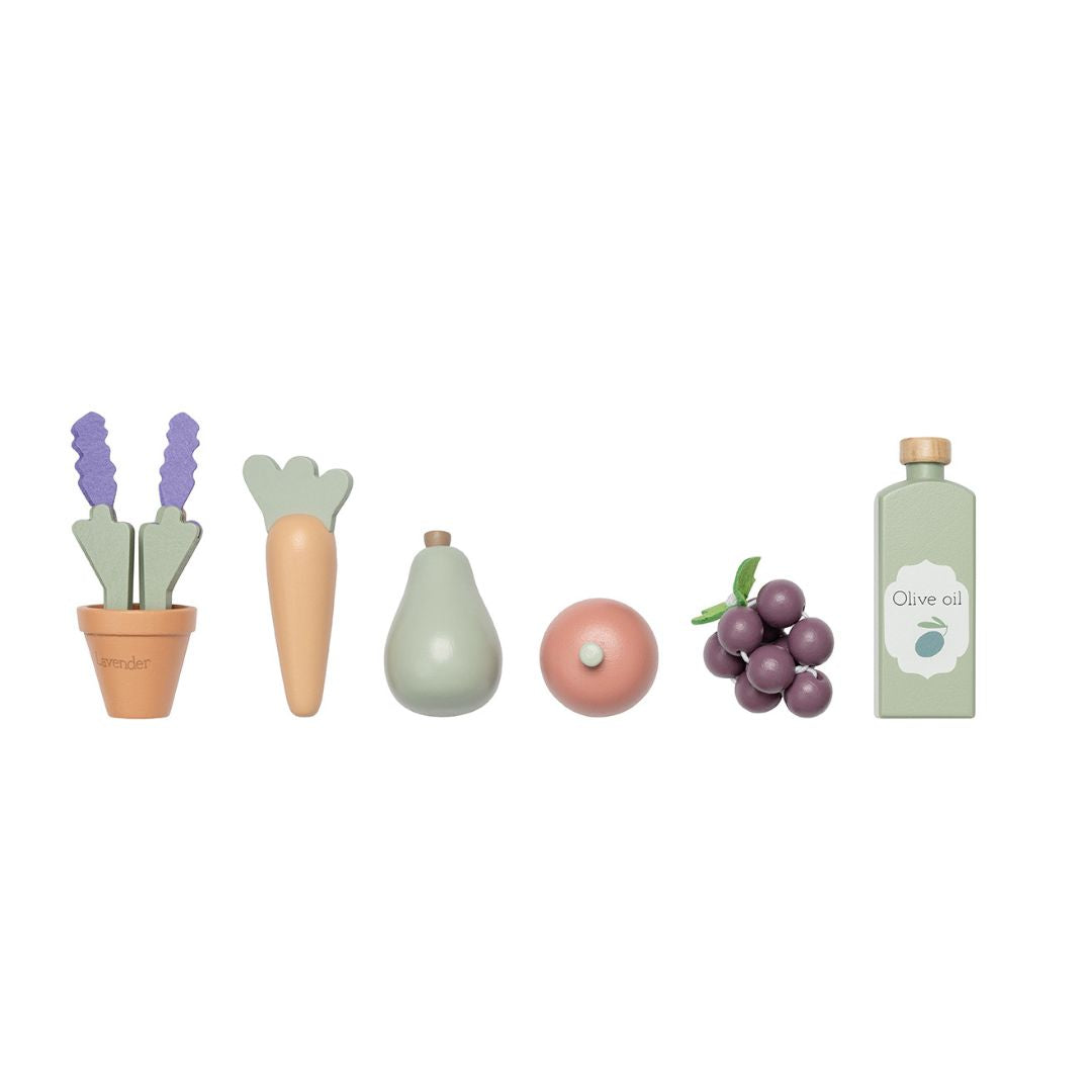 ✔️ Ξύλινα λαχανικά, ψωμί, τυρί & άλλα προϊόντα για ρεαλιστικό παιχνίδι αγορών.