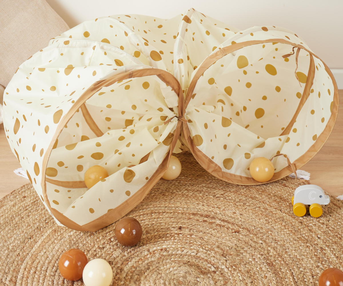 Το τουνέλ παιχνιδιού Dots είναι ιδανικό για παιχνίδι, μπουσούλημα και κρυφτό! Το αναδιπλούμενο τουνέλ τύπου Pop-Up στήνεται μέσα σε λίγα δευτερόλεπτα και αποθηκεύεται εύκολα, χωρίς να πιάνει χώρο — ο τέλειος σύντροφος για μικρούς εξερευνητές, τόσο μέσα όσο και έξω από το σπίτι.