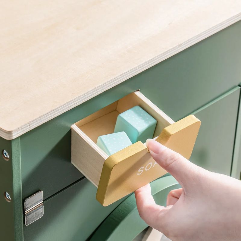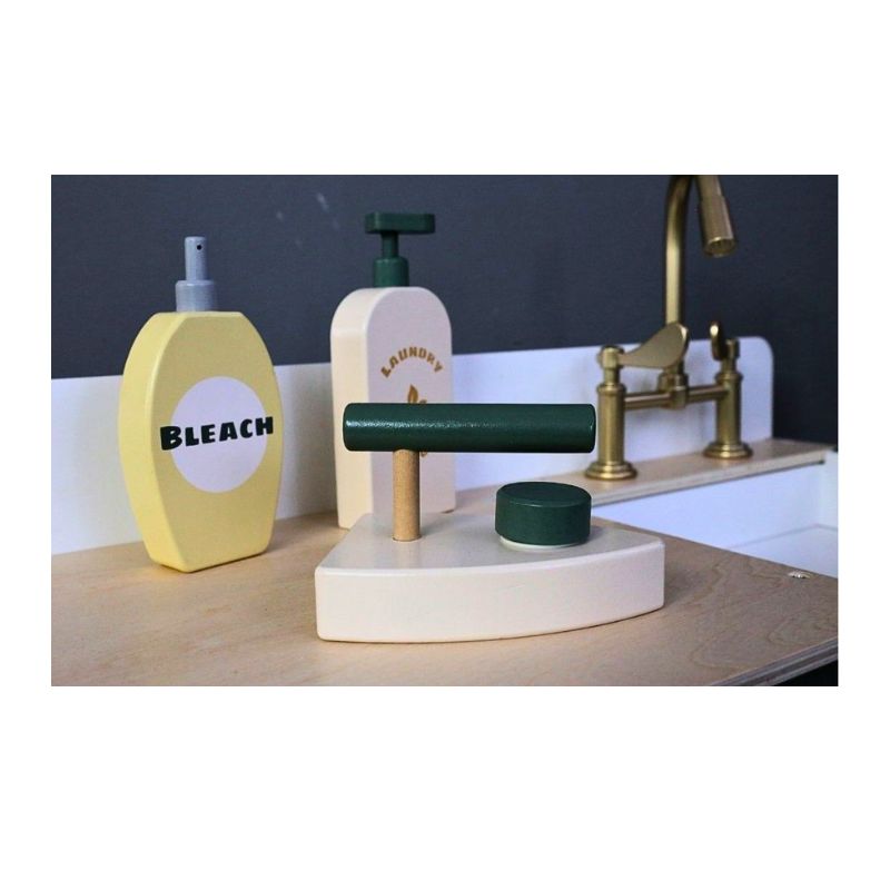 Είναι κατασκευασμένο από ανθεκτικό ξύλο, είναι σε κατάλληλο μέγεθος και έχει πρακτικά ντουλάπια για να αποθηκεύσετε ότι θα χρειαστεί το παιδί για να πλύνει τα ρούχα του ή και να τα σιδερώσει.